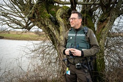 De Ooy, de Hatertse Vennen, De Mookerplas, de Nijmeegse uiterwaarden. Gebieden waar Michel actief is tegen visstroperij. “Snoekbaars doet op de zwarte markt 15 euro per kilo. Dus als de stroper 50 kilo vangt, tel uit je winst. Kijk, alles in onze schaarse flora en fauna hangt in kwetsbare balans met elkaar samen en verstoring daarvan leidt tot kwalijke domino-effecten. Een voorbeeld? De graskarper eet jong riet en waterplanten. Wordt die weggevist dan groeien waterwegen in no time dicht. Peperduur om die telkens weer uit te baggeren.